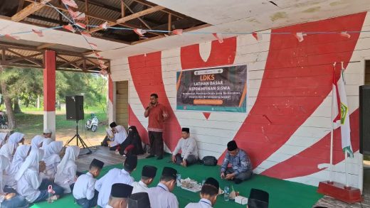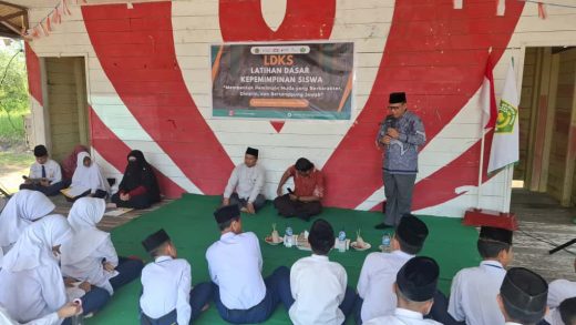 Wakil kepala MTs Negeri Lingga bidang kurikulum Dandhung Whisapto memberikan pengarahan pada kegiatan Latihan Dasar Kepemi...